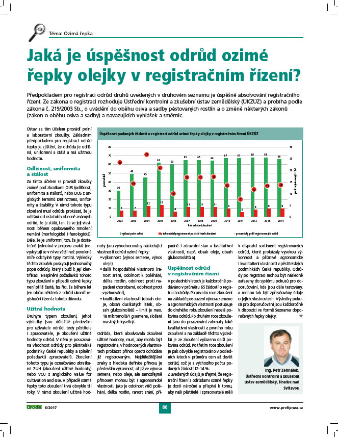 | Jaká je úspěšnost odrůd ozimé řepky ozimé řepky olejky v registračním řízení? | Úroda | 31.12.2016 | Odrůdy | 6 |