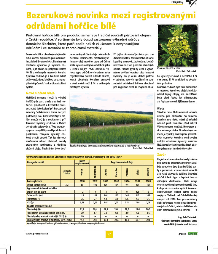 Bezeruková novinka mezi registrovanými odrůdami hořčice bílé